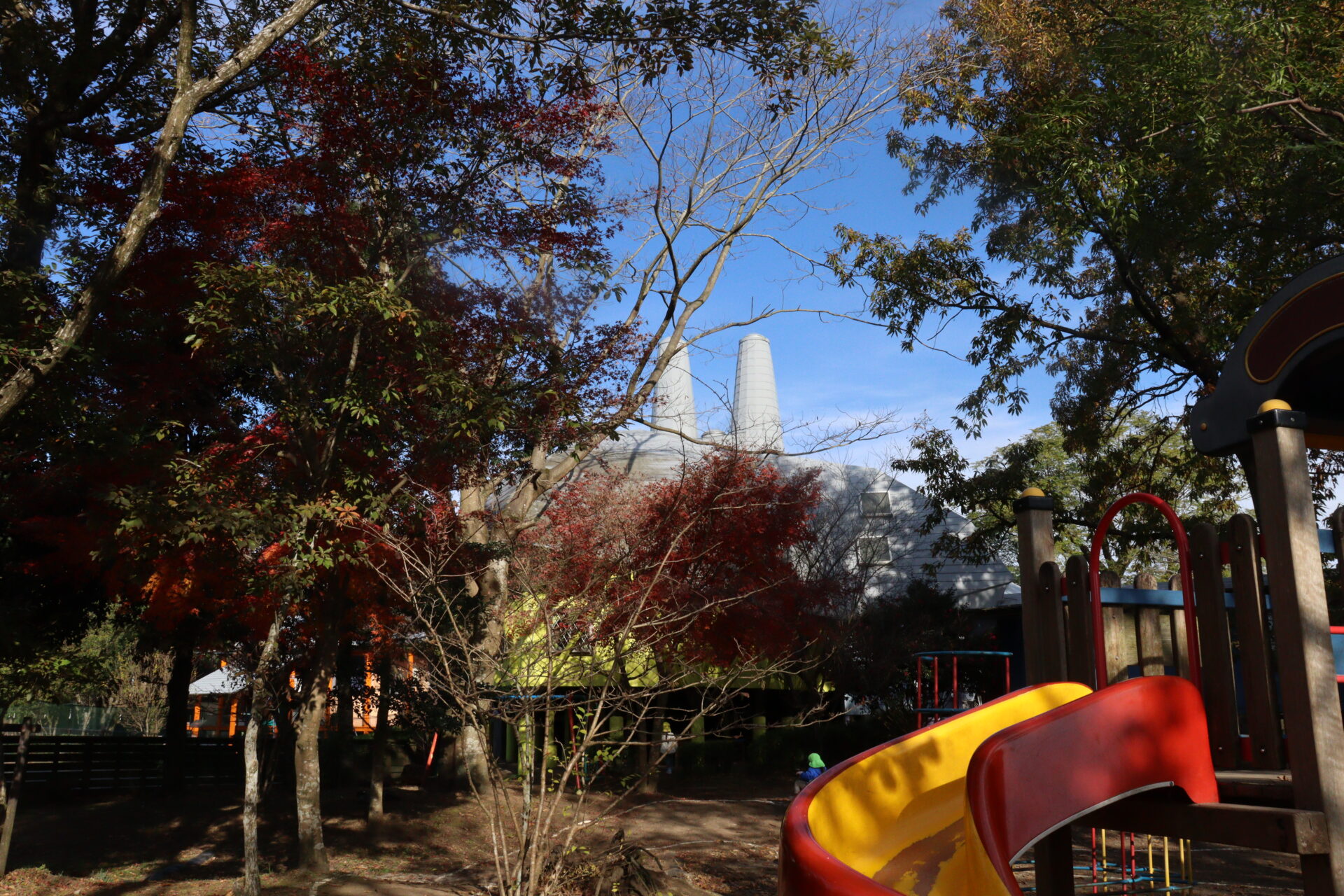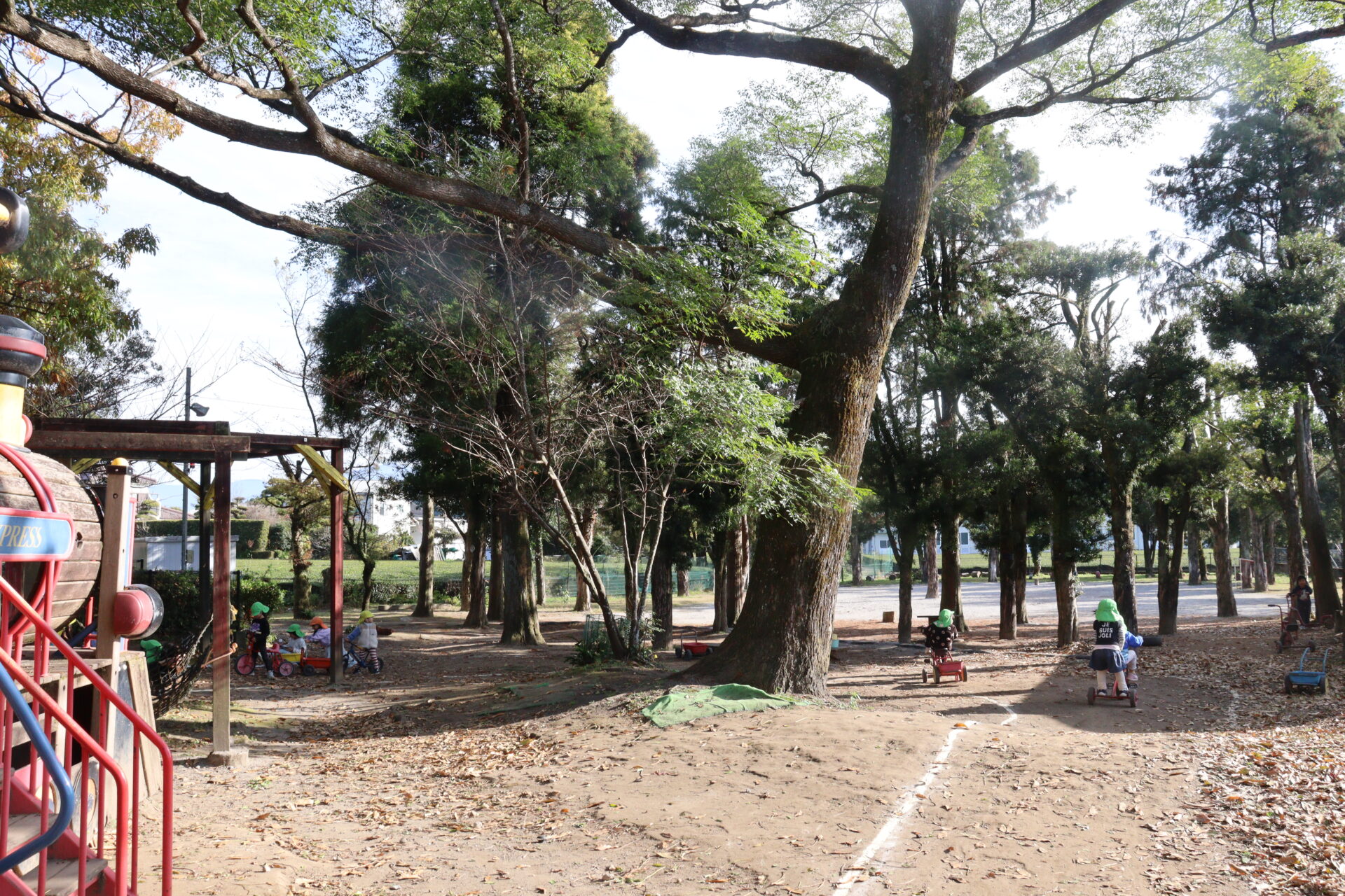 園庭の紅葉が鮮やかになりました。園児たちはストライダーに乗り レースを楽しんでいますよ