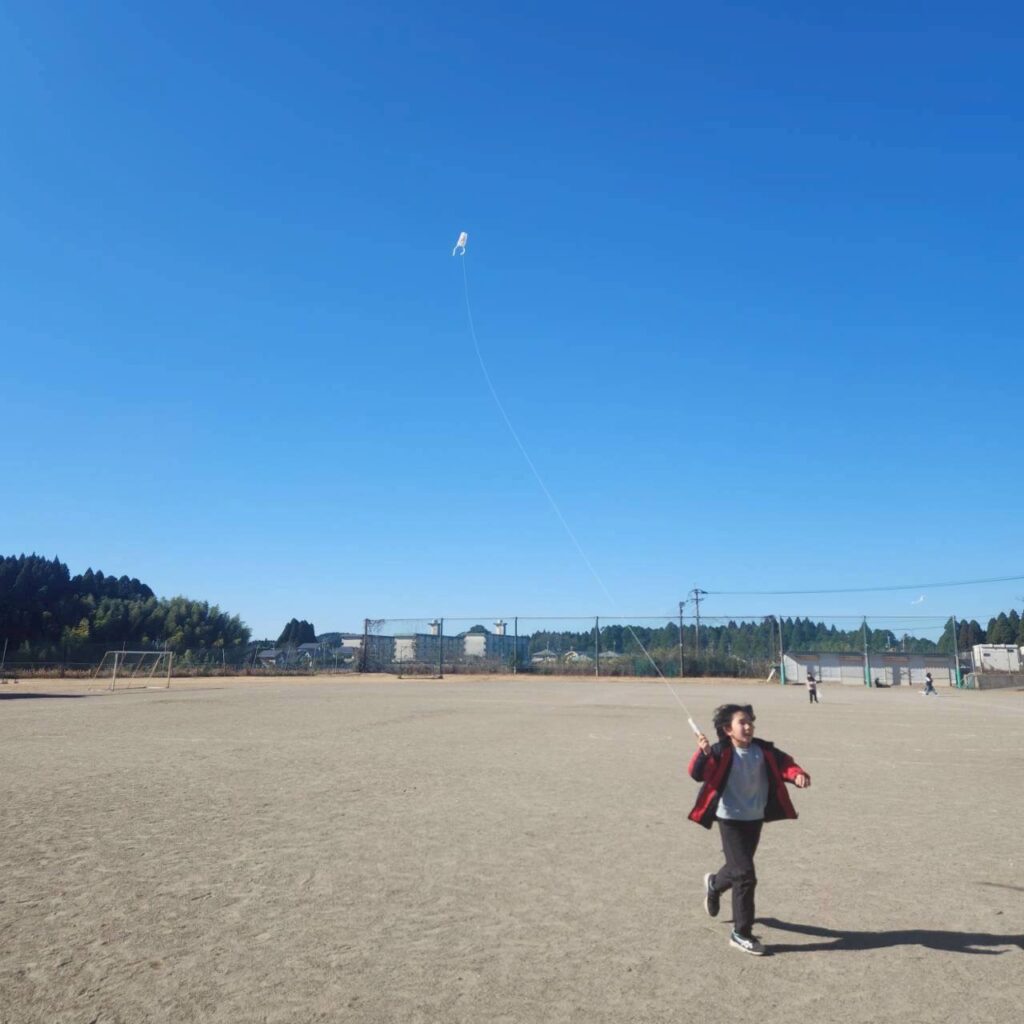 完成した凧を持って、近隣の小学校のグラウンドへGO!!!