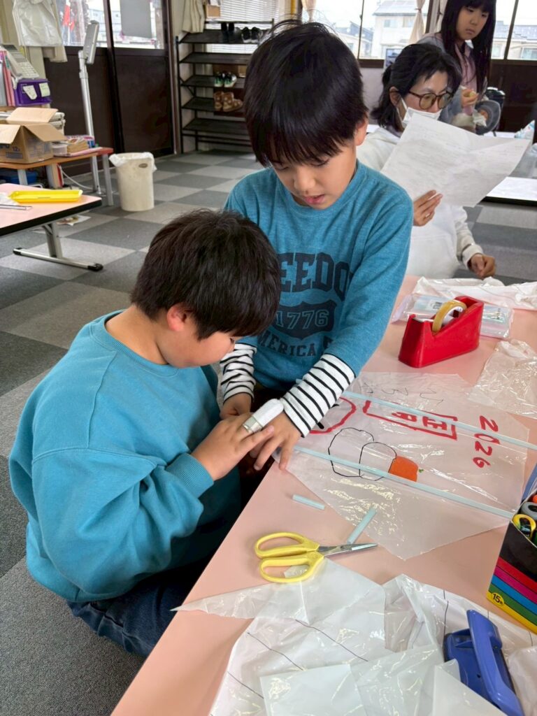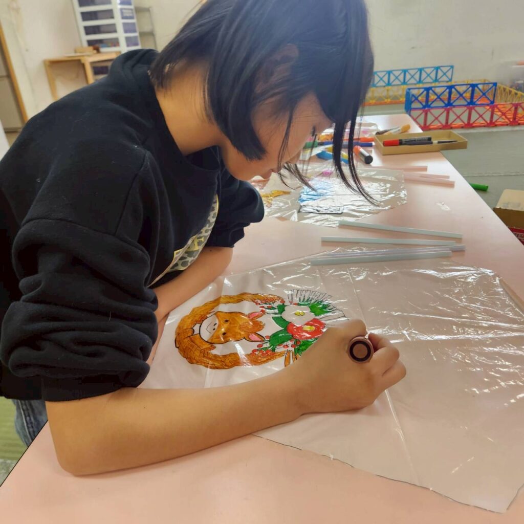 写し絵をしたり、オリジナルのデザインにしたり、様々でしたが、思い思いに自分の凧をデザインすることを楽しんでいました!