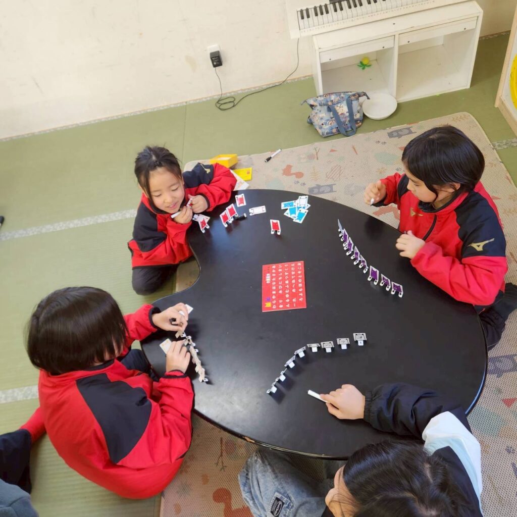 ゲームに取り組む中で、ルールを守ることの大切さに気付いたり、勝って嬉しい気持ちや、負けて悔しい経験をする中で、相手に対しての声の掛け方はどうかな?相手に嫌な思いをさせる言葉は使っていないかな?など、いろいろなことを学ぶ機会になりました!