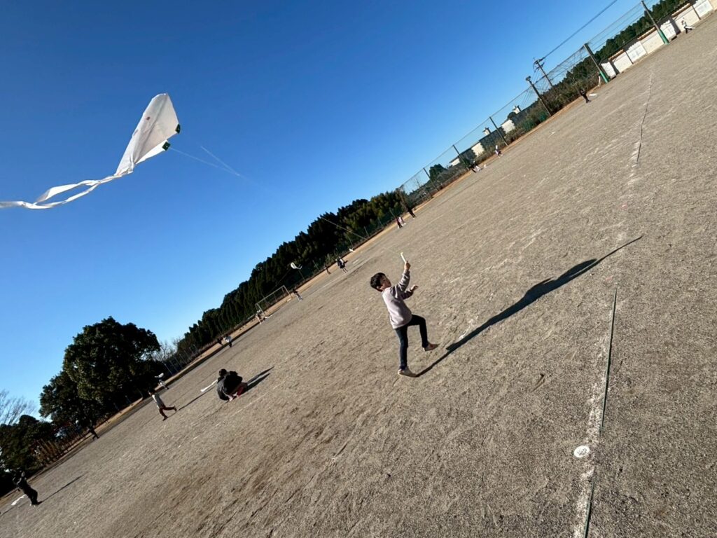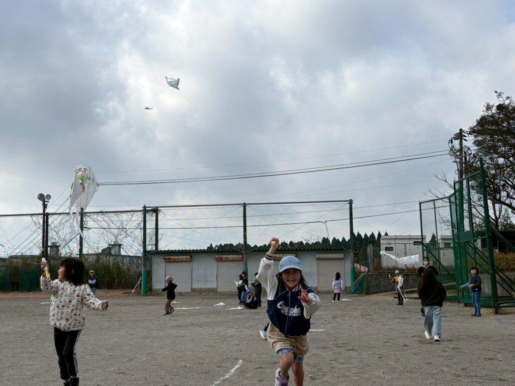 風を受け、よく飛ぶ凧に大興奮の子どもたち!!
